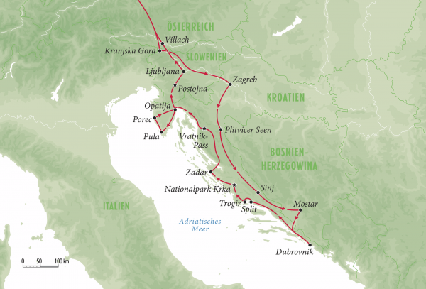 Ihre Fahrt führt Sie heute über die kroatisch-slowenische Staatsgrenze nach Postojna. Hier erwartet Sie eine Besichtigung der weltberühmten Tropfsteinhöhlen "Adelsberger Grotte". Danach fahren Sie nach Ljubljana, wo Sie nach einer Stadtrundfahrt noch Zeit für einen individuellen Stadtbummel haben. Anschließend reisen Sie zur Übernachtung in den Raum Villach.