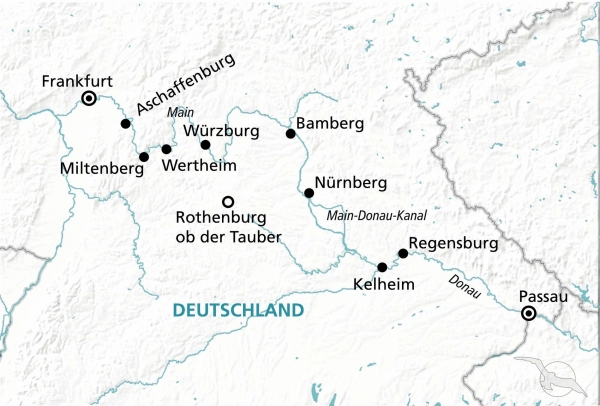 Während dieser siebentägigen Flusskreuzfahrt mit MS Andrea bieten sich Ihnen schönste Impressionen von Main und Main-Donau-Kanal. An Land erwarten Sie faszinierende Ortschaften und Städte wie der Bischofssitz Regensburg, die Lebkuchenstadt Nürnberg, das oberfränkische Bamberg mit einer beeindruckenden Altstadt, Würzburg mit der UNESCO-geschützten Residenz und das historische Miltenberg. Diese Reise, mit einer hervorragenden Mixtur aus kulturellen Höhepunkten und wunderschönen Natureindrücken, ist rundum ein gelungenes Erlebnis!