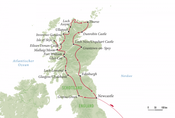 (*) Hotels im Schottischen Hochland entsprechen nicht immer den Qualitätsstandards der ausgewiesenen Mittelklassekategorie. Sehr oft sind es charmante Häuser mit individuellem Flair, die gut in die Landschaft und zur Reise passen. Einige Häuser verfügen über keinen Lift.